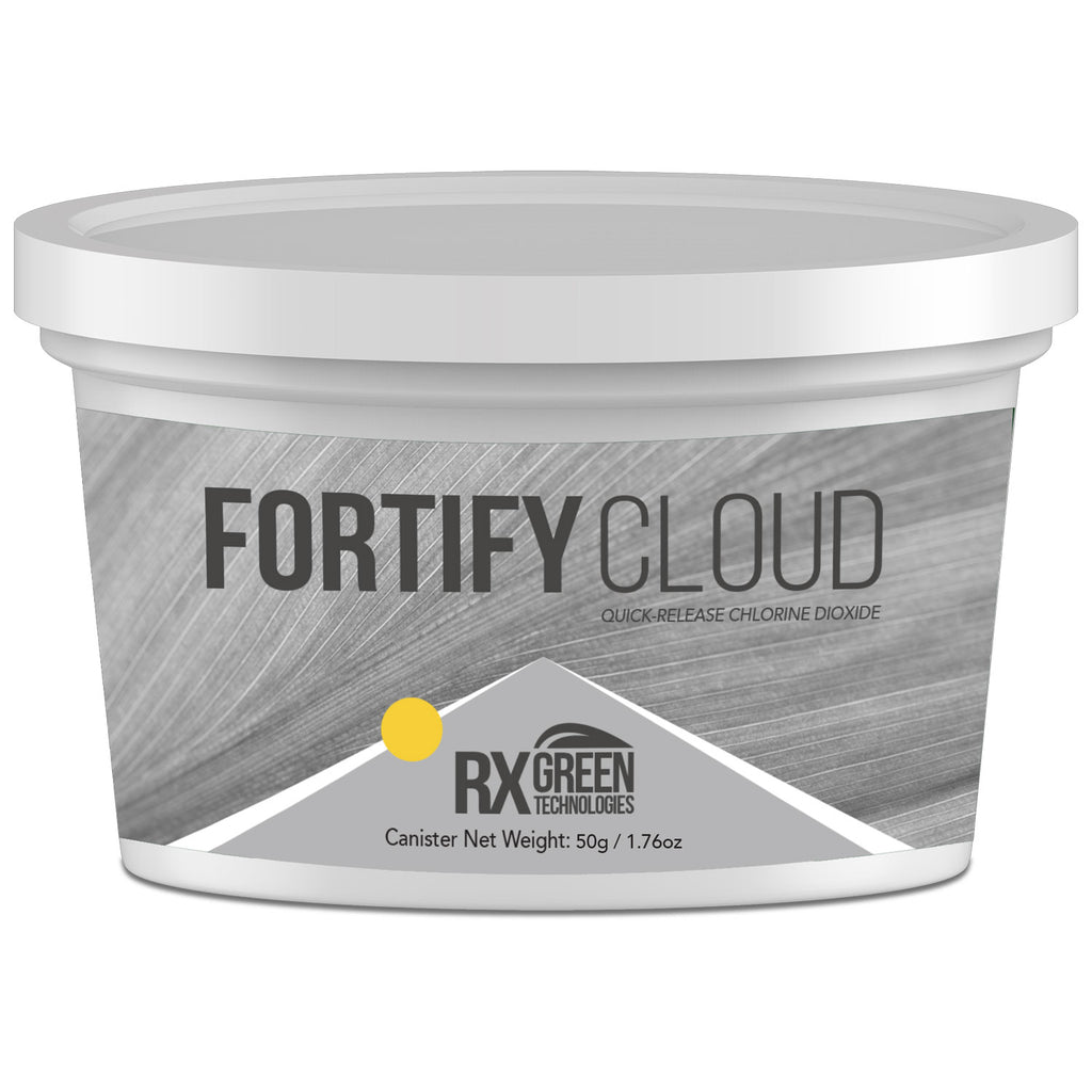 Fortify Cloud is a portable, water-activated chlorine dioxide gas generation system that has the power to disinfect surfaces and facility air with unmatched effectiveness, leaving no residue or post-treatment cleanup requirement. The Fortify Cloud chlorine dioxide system creates pure chlorine dioxide gas on-site making it perfect for routine disinfection and odor control between harvests.
