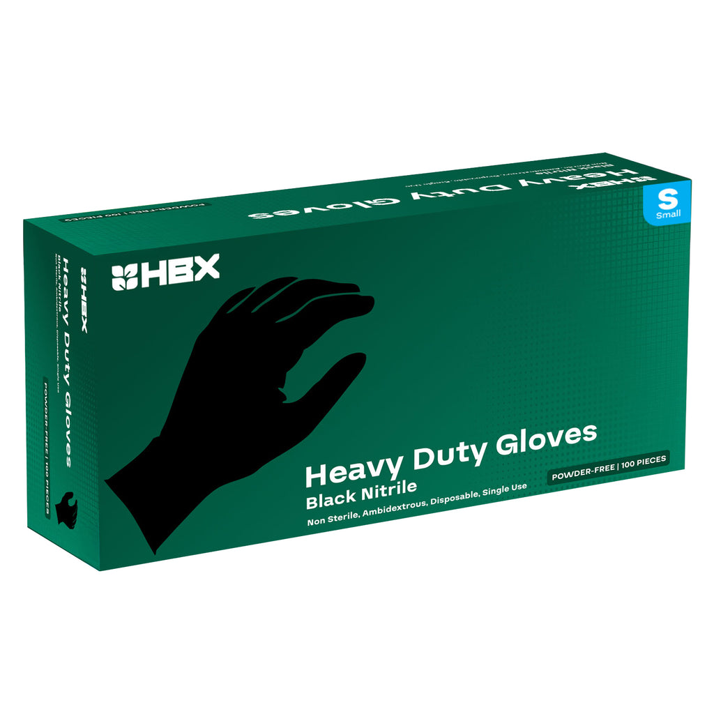 HBX Heavy Duty Premium Black Nitrile Gloves, Small, Box of 100